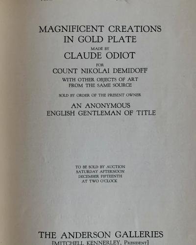The treasures of the House of Odiot continue to regularly come to market, and at the most presitgious auction houses, and commanding premium prices. For example, a large number of pieces from the Demidoff Service, came up for sale as recently as 7 July 2011, as Lot Number 30, at Christie's 'Exceptional Sale', that took place in London and sold for GBP 3,177,250. There also is keen interest amongst academic scholars to research the history of the luxurious works of Odiot as well as those of his other contemporary masters of French Empire-style metalwork and neoclassical artistry. To name only two, from amongst a large list, Dr. Ludmila Budrina has published numerous academic articles and books on the topic. More recently, Dr. Karolina Stefanski, published her important critical findings on Odiot's historical treasures in her glossy new book entitled, "Transformation of the Empire style in silverware from Berlin, Warsaw and Vienna. 1797 to 1848".
