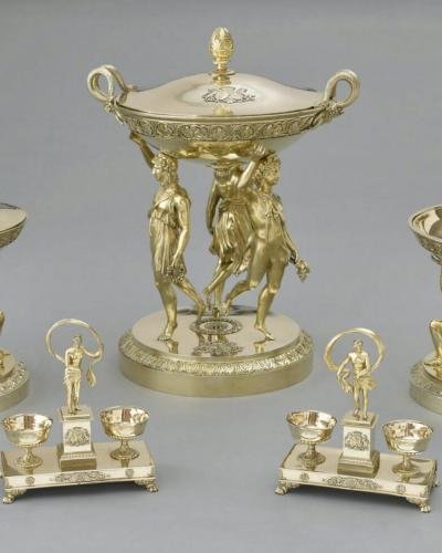 The Demidoff Service is one of the most magnificent French Services of the early 19th Century. The Service comprised 219 pieces that Count Nikolai Demidoff (1773-1828) purchased in 1817 and 1818 from Jean Baptiste Claude Odiot (1763-1850) of the famed dynasty of goldsmiths and silversmiths. It was his grandfather, Jean Baptiste Gaspard Odiot, who founded the firm in 1690, during the reign of Louis XIV, and who became recognized as one of the finest goldsmiths of his time.